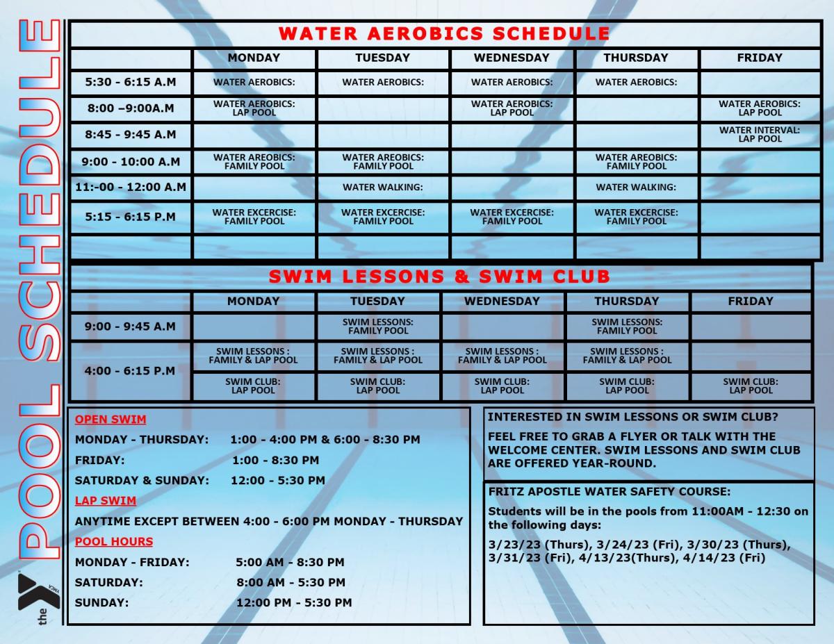 - 8:00 AM - 5:30 PM (Open Swim)